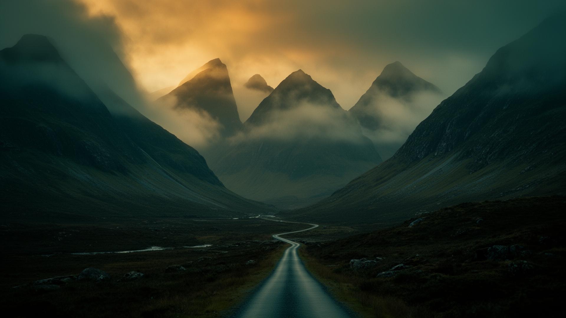 DB5 on the Glen Etive road — Skyfall (2012) №012012SkyfallGlen Etive & Glen CoeThe famous single-track road into Glen Etive carries Bond and M north toward the Skyfall lodge — a long, lingering drive past the Three Sisters with a silver Aston DB5 against the Highland weather.